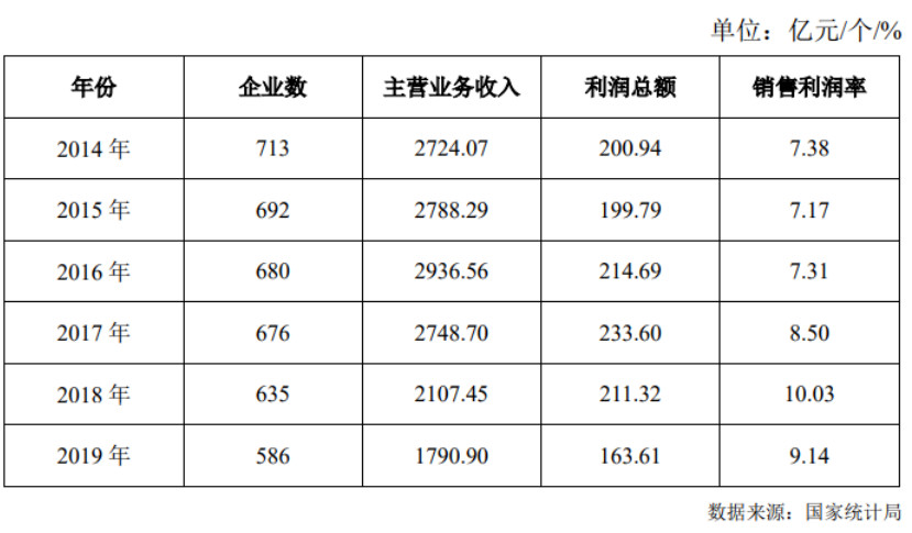 根据国家统计局数据,近年来我国生物农药行业,规模以上企业(年产值2000万元以上)的主营业务收入、利润总额、销售利润率情况如下: