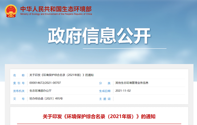 生态环境部印发《环境保护综合名录(2021年版)》