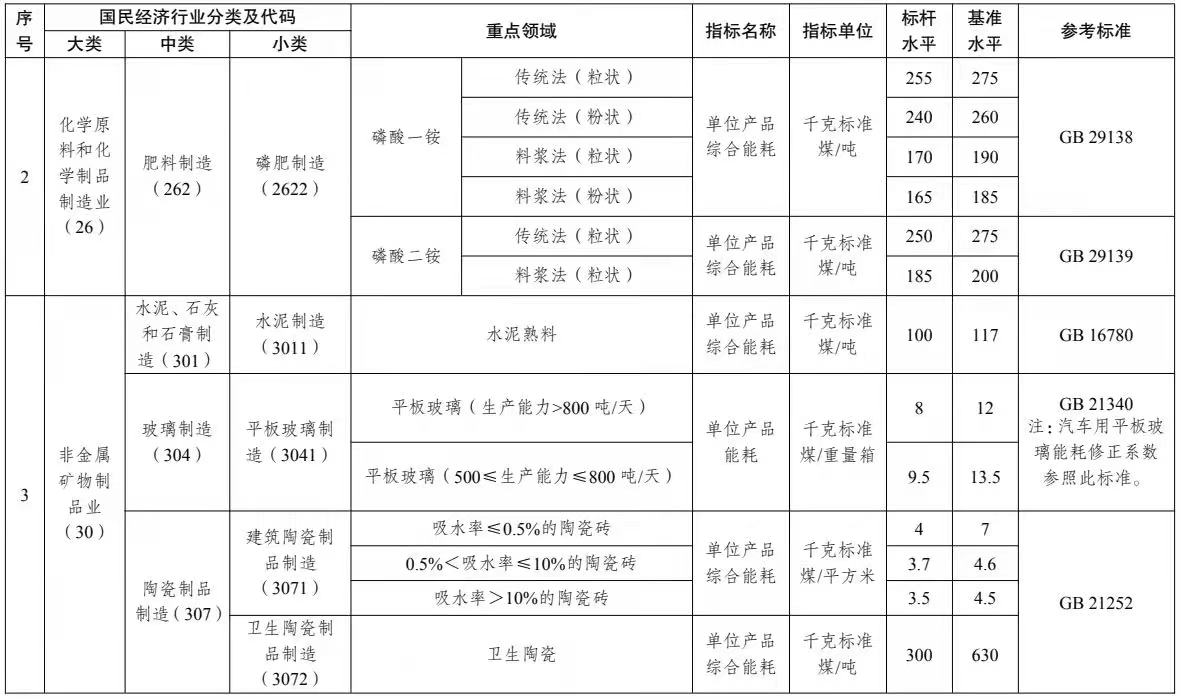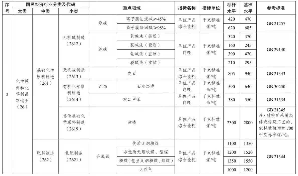 《高耗能行业重点领域能效标杆水平和基准水平(2021年版)》表格如下:
