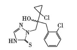 7 丙硫菌唑(prothioconazole)CAS登录号:178928-70-6;分子式:C14H15Cl2N3OS;相对分子质量:344.26。结构式: