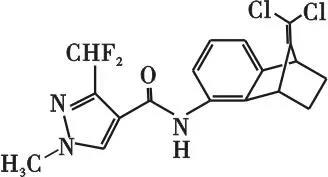 3 苯并烯氟菌唑(benzovindiflupyr)CAS登录号:1072957-71-1;分子式:C18H15Cl2F2N3O;相对分子质量:398.23。结构式: