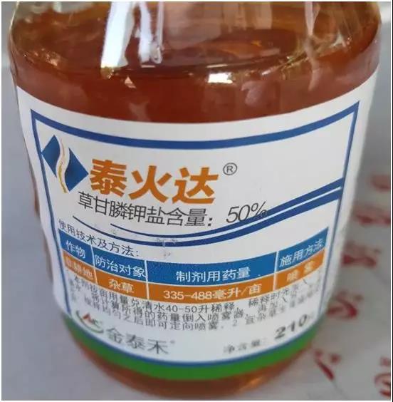 标签标注的其中一个含量低的是草甘膦含量,不管是钾盐、铵盐或钠盐,统称都是草甘膦,按草甘膦离子的含量来算,30%草甘膦≈33%草甘膦铵盐≈34%草甘膦钠盐≈37%草甘膦钾盐≈40.5%草甘膦异丙胺盐,草甘膦二甲铵盐不详。